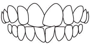 Malalignment of teeth caused by inadequate space. Teeth overlap and can even become twisted when there isn’t enough room for them in the mouth.